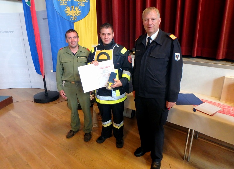 Eine besondere Überraschung gab es noch für Maximilian Reimoser. Als Anerkennung für die Pflege der Feuerwehrpartnerschaft nach Lindabrunn sowie für die Organisation zur Bewerbsteilnahme, erhielt er in Zistersdorf die „Medaille für internationale Feuerwehrkameradschaft in Bronze“ des niederösterreichischen Landesfeuerwehrverbandes verliehen.