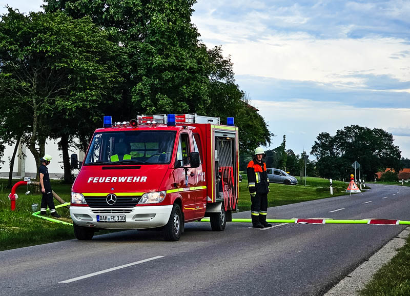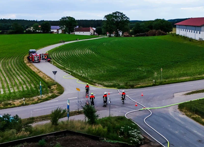 Zur Sicherstellung der Wasserversorgung wurde eine 340 Meter lange Schlauchleitung vom Hydranten zu einem Auffangbecken gefördert, zudem wurde Wasser aus einem 80.000 Liter fassenden Löschwasserbehälter entnommen. Beide Wasserförderungen wurde über die Ortsverbindungsstraße nach Ebertshausen verlegt.