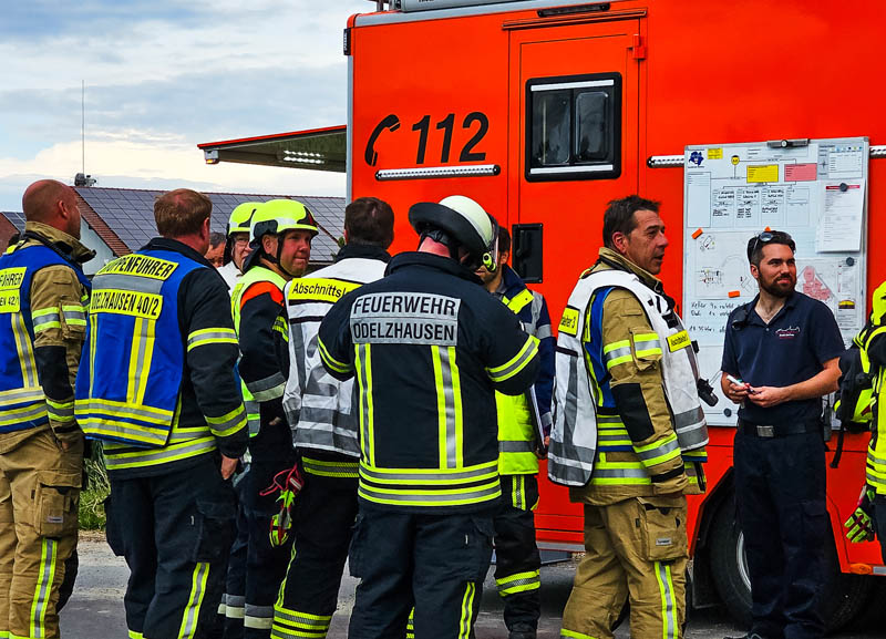 Insgesamt waren ca. 100 Einsatzkräfte aus den Feuerwehren Ebertsausen, Einsbach, Odelzhausen, Rottbach, Wenigmünchen und Wiedenzhausen sowie der UG-ÖEL an der Übung beteiligt.