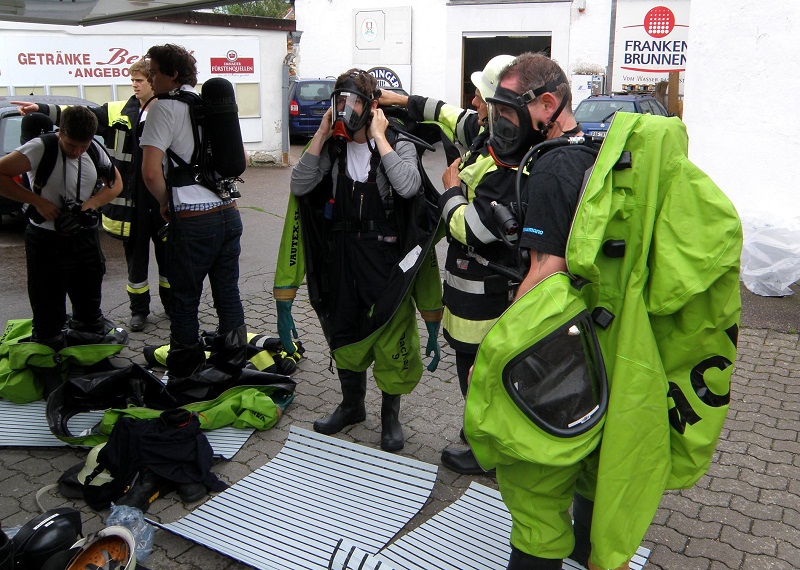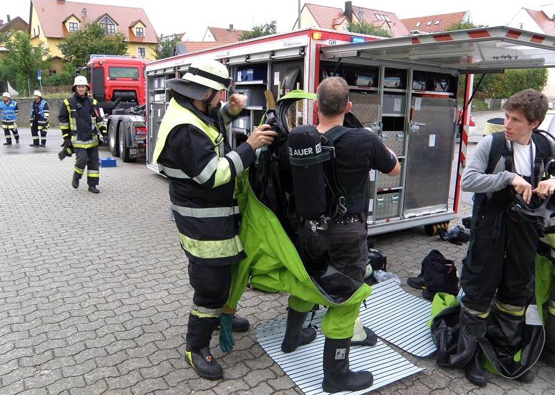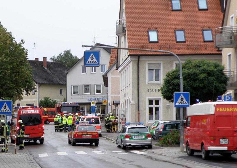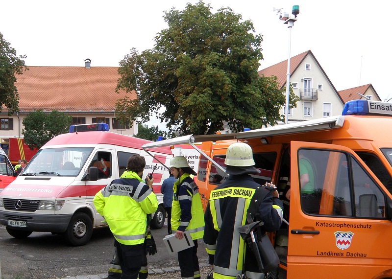 Ein Großaufgebot von Feuerwehr und Rettungsdienst wurde am Samstagmittag (27.08.2011) um kurz nach 13.00 Uhr zu einem Chlorgasaustritt nach Markt Indersdorf alarmiert. In einem Schwimmbad am Marktplatz sind aufgrund eines technischen Defekts Aufbereitungschemikalien ausgetreten.Zum Zeitpunkt des Gefahrstoffaustritts fand gerade ein Kinderschwimmen in dem Bad statt, die 17 Kinder und Elternteile klagten über Atembeschwerden und Reizwirkung. Die Betroffenen wurden vom Rettungsdienst zunächst in einer nahe gelegenen Gaststätte betreut und anschließend mit leichten Verletzungen in drei Münchner Kliniken zur weiteren Behandlung und Beobachtung eingeliefert.