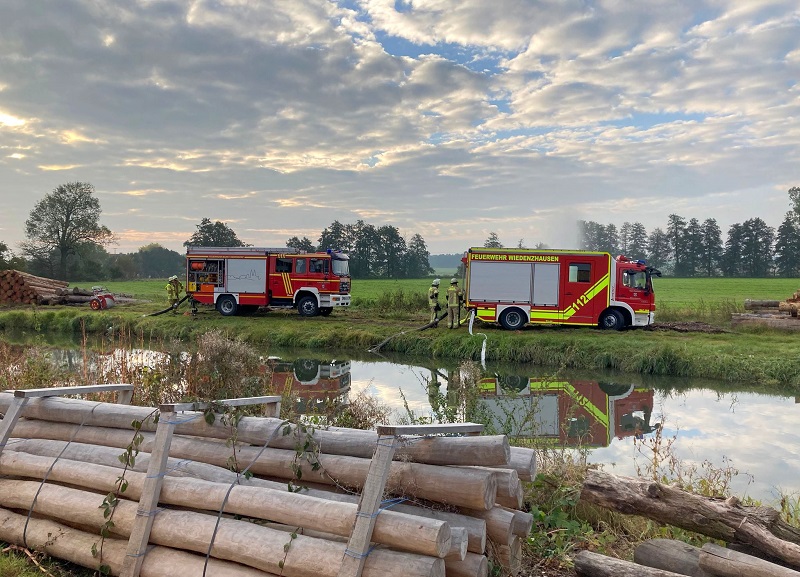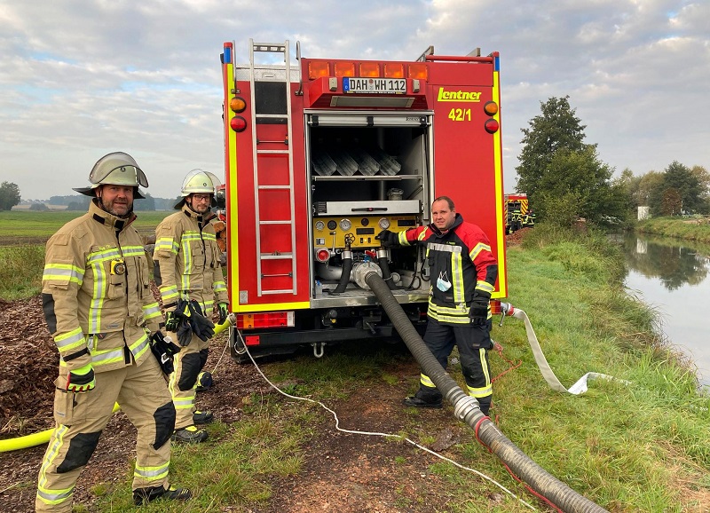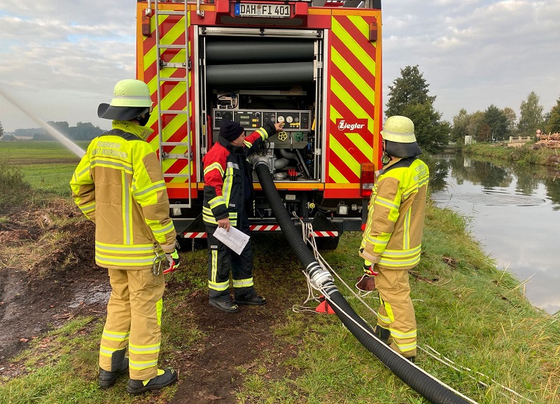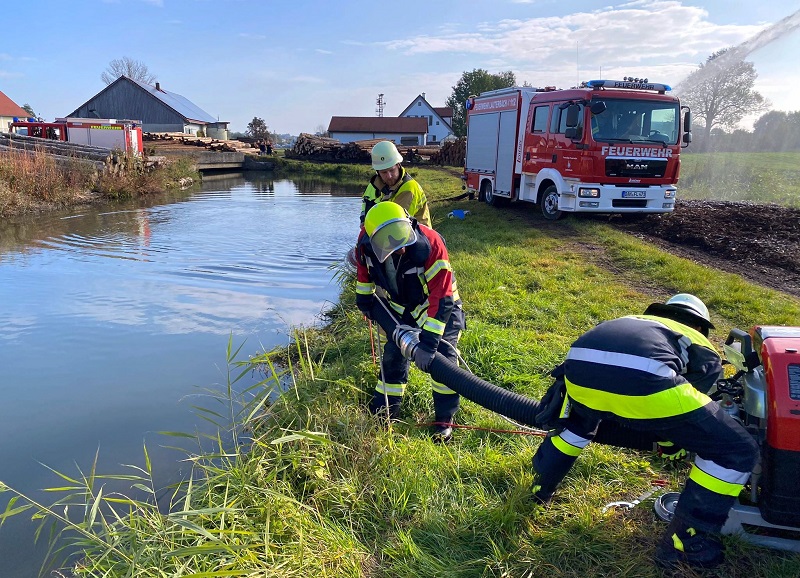 Zum Abschluss wurden die Wasserentnahme aus offenen Gewässern sowie die anschließende Wasserförderung geübt.