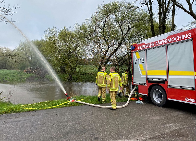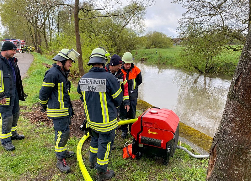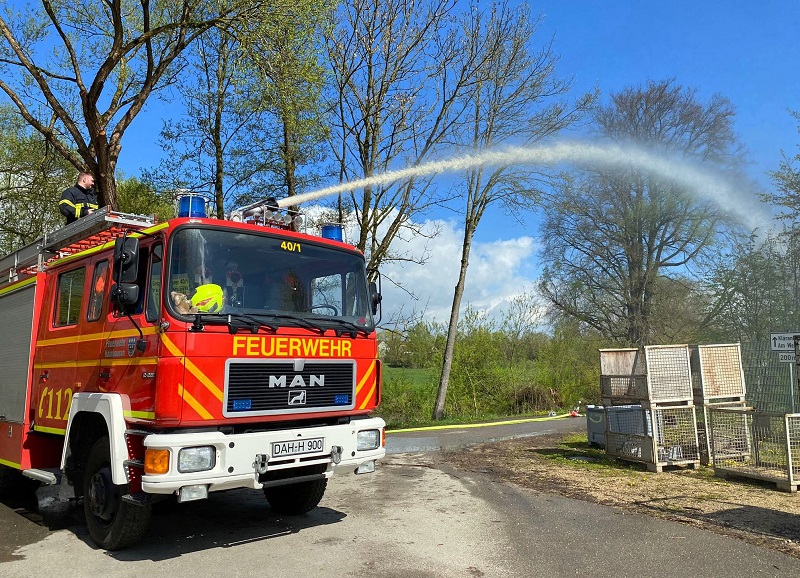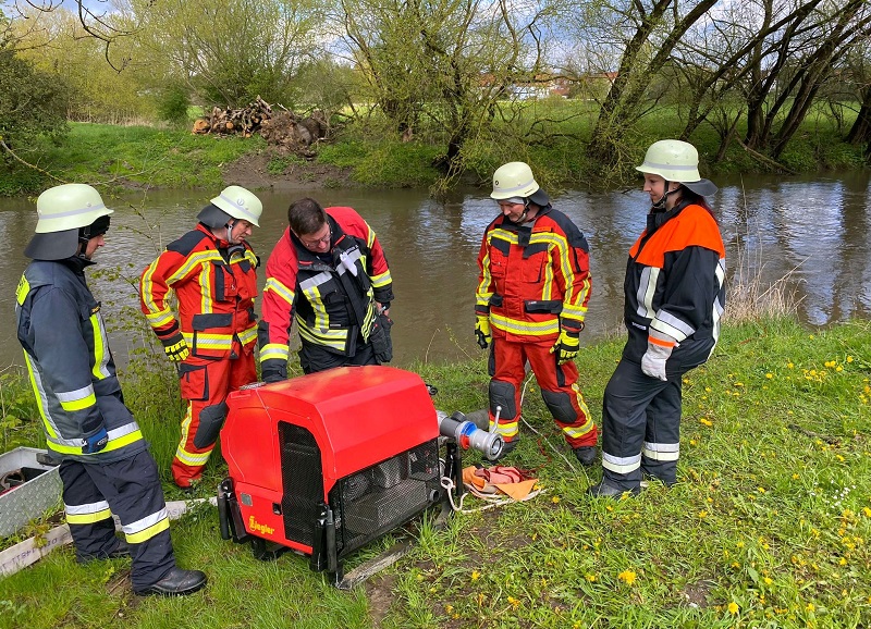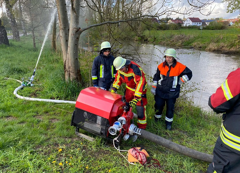 Zum Abschluss wurden die Wasserentnahme aus offenen Gewässern sowie die anschließende Wasserförderung geübt.