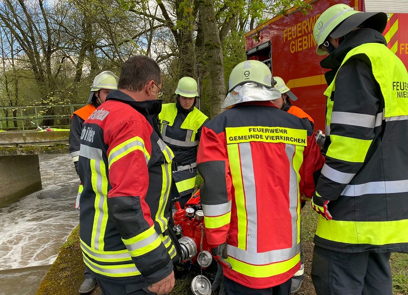 Die praktischen Ausbildungseinheiten wurden in gleichbleibenden Kleingruppen abgehalten. Dabei lernten die angehenden Maschinisten die Inbetriebnahme und Bedienung von Feuerlöschkreiselpumpe, Stromerzeuger, Tauchpumpe, Motorsäge und Überdrucklüfter kennen.