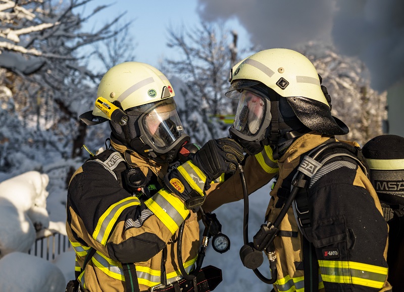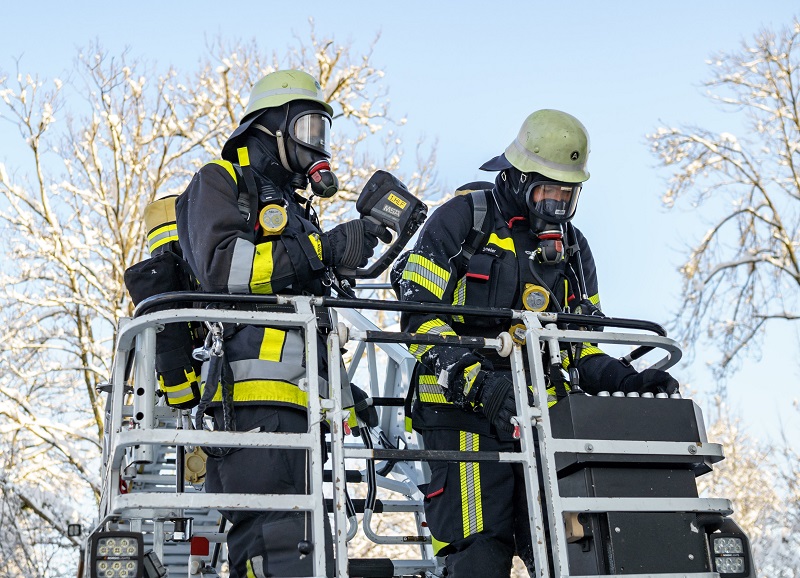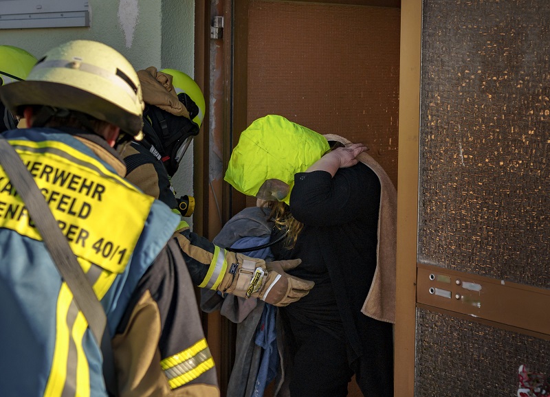 Auch das Treppenhaus war bereits völlig verraucht, so dass eine eigenständige Flucht der Bewohner darüber nicht mehr gefahrlos möglich war. So erfolgte die Personenrettung über tragbare Leitern, die Drehleiter sowie parallel dazu mit Atemschutztrupps, welche die Betroffenen mithilfe von Fluchthauben über das Treppenhaus ins Freie brachten. Auch ein Hund wurde im Objekt vorgefunden und gerettet, das Tierheim wurde verständigt.