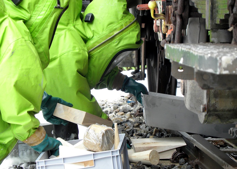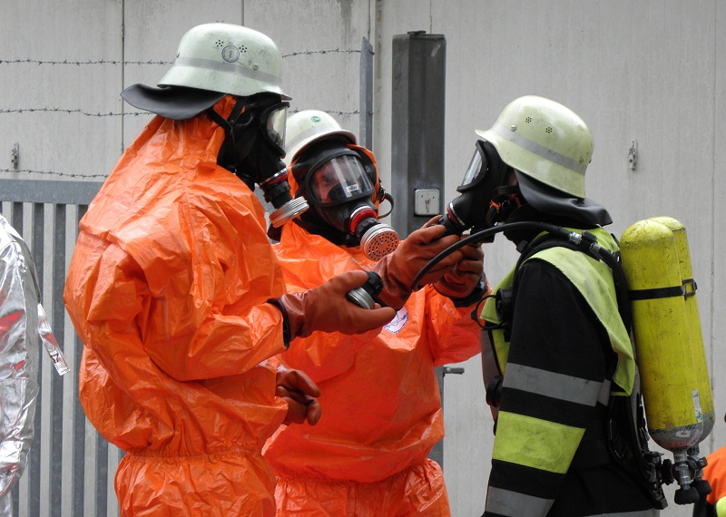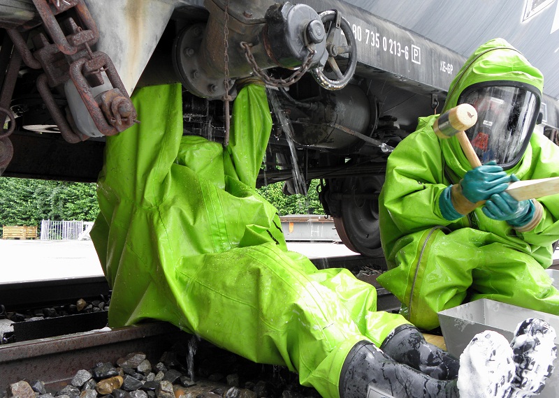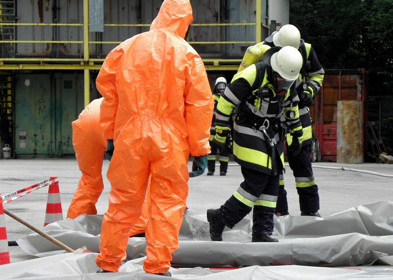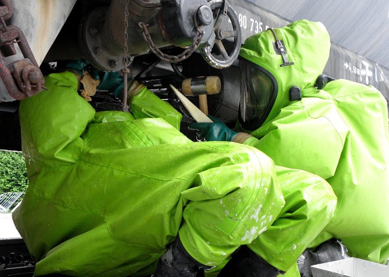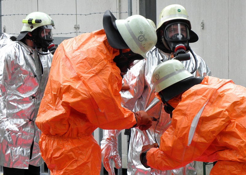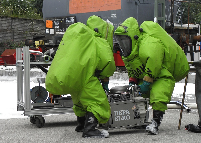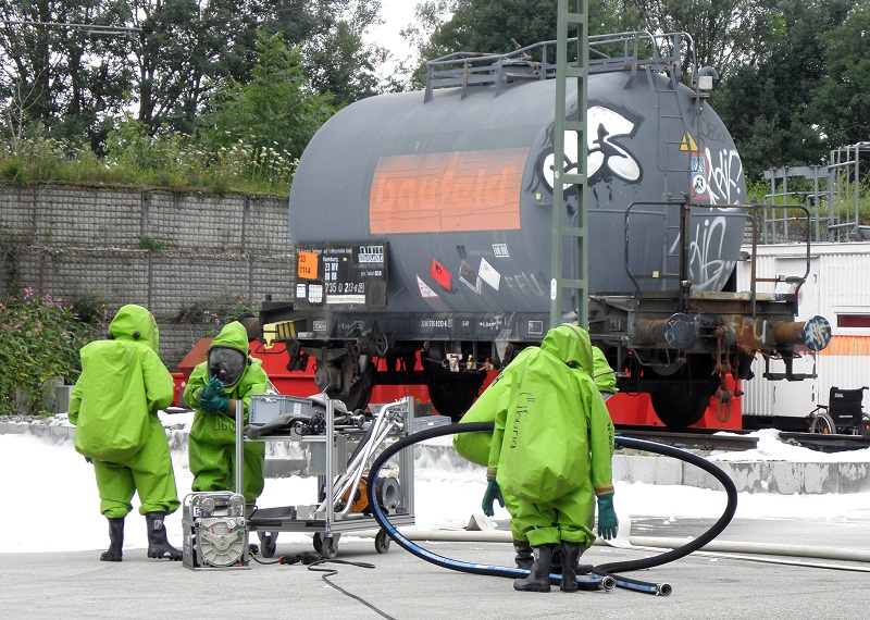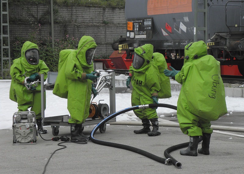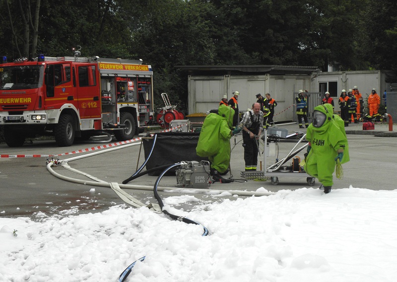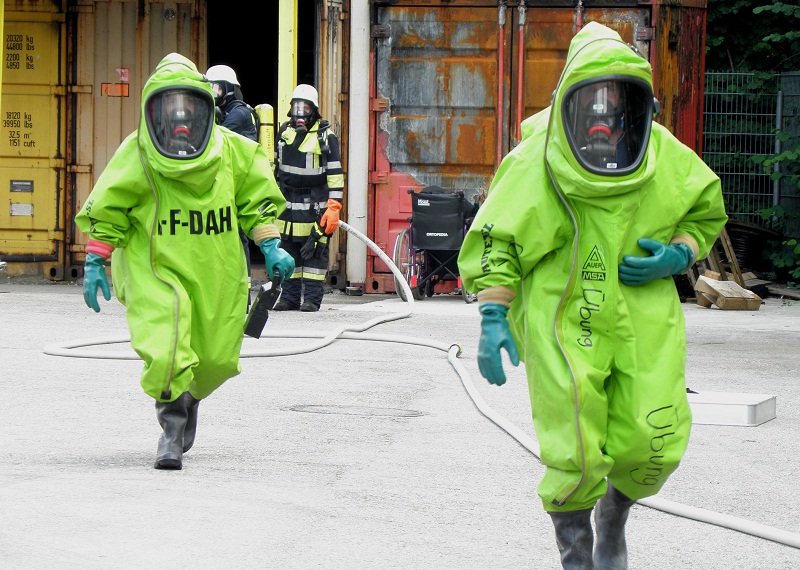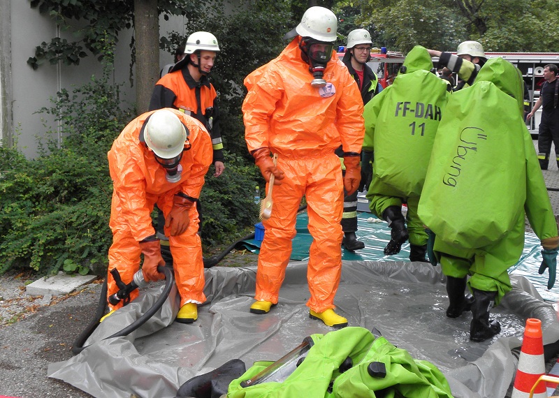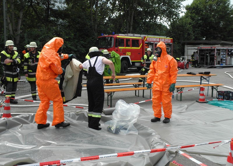 Die im Gefahrenbereich arbeitenden Kräfte mussten anschließend ebenso wieder gereinigt und aus Ihren Schutzanzügen „befreit“ werden.