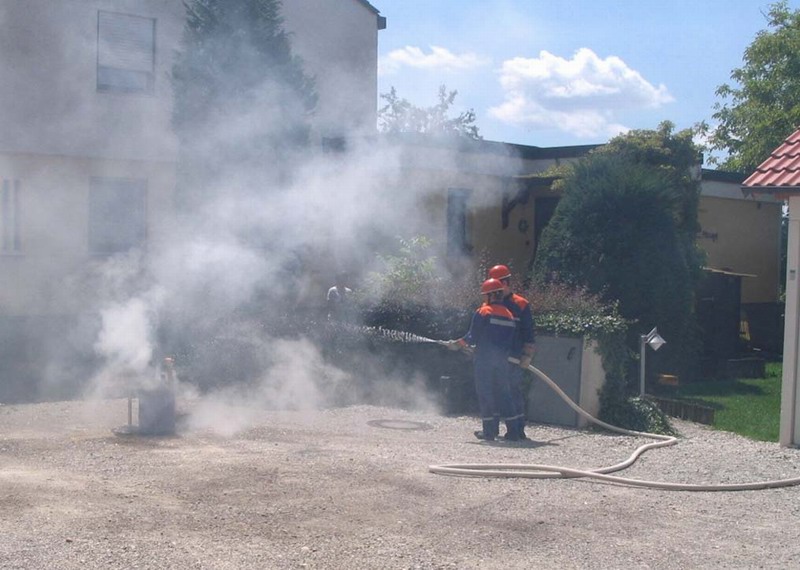 Um 13.30 Uhr kam auch schon der erste Alarm. Die Jugendlichen wurden zu einem Mülleimerbrand in der alten Dorfstraße gerufen. Dieser wurde mit einem Wasseraufbau schnell gelöscht. Gleichzeitig rückte die zweite Bereitschaftsgruppe zu einem Fehlalarm bei der Firma Schuhbauer aus.