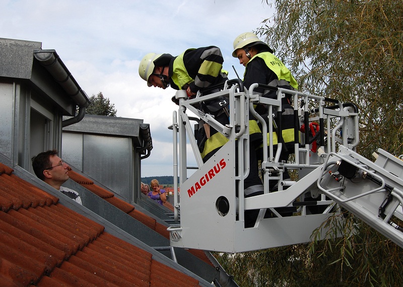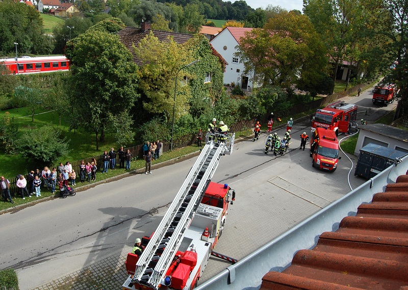 Die Personenrettung aus dem Dachgeschoss wurde durch die Drehleiter aus Markt Indersdorf unterstützt.