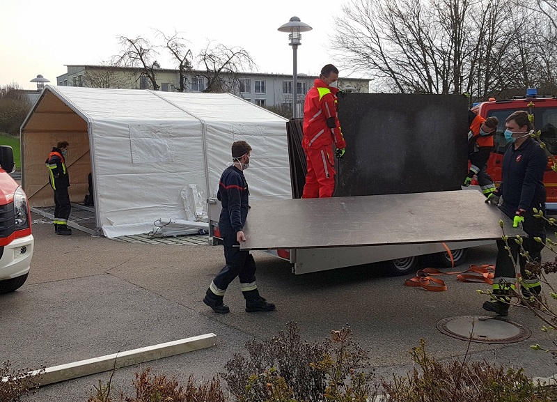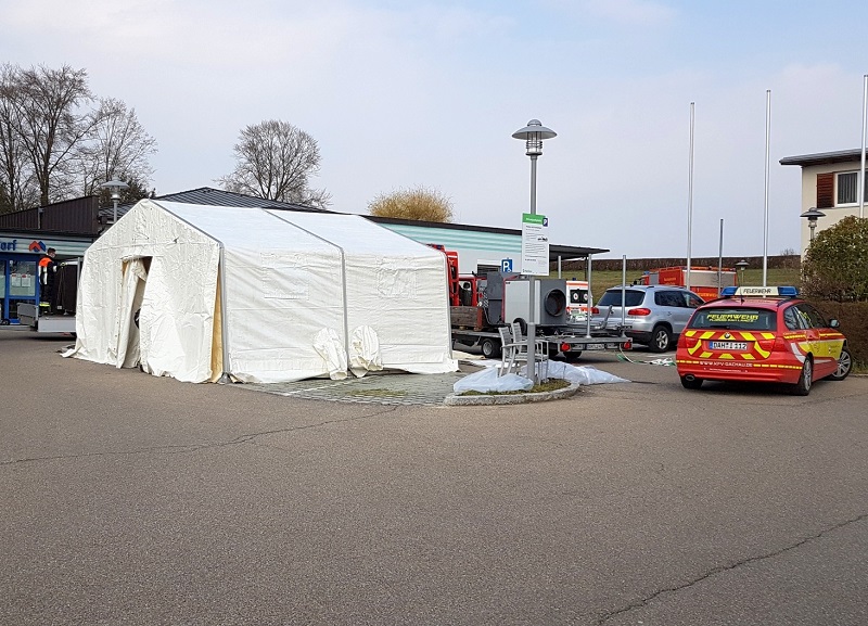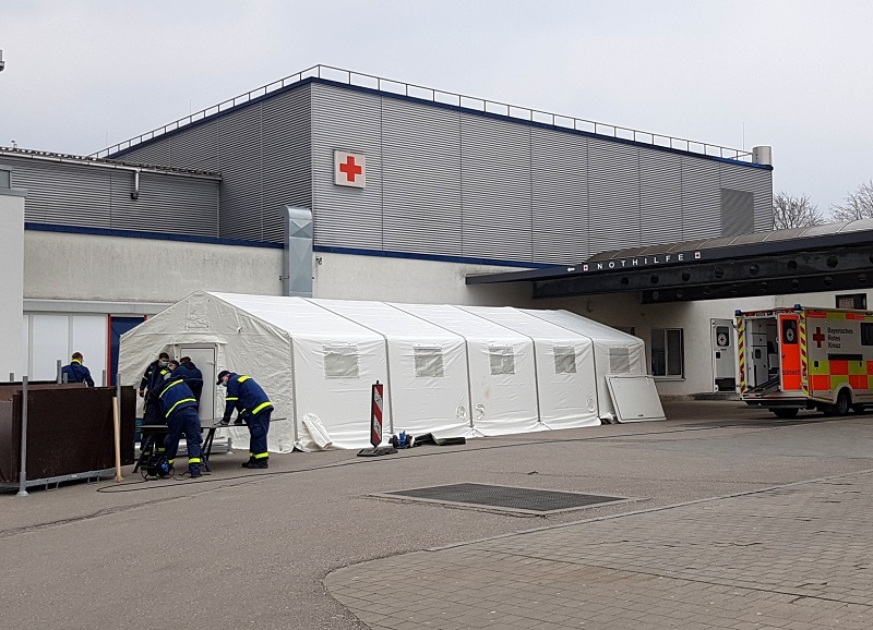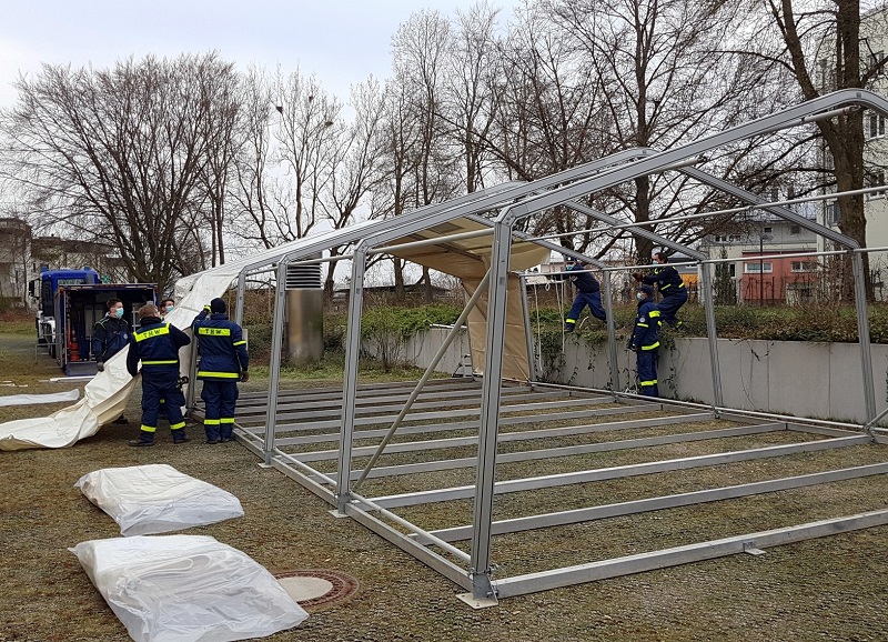 In Abstimmung mit der Führungsgruppe Katastrophenschutz im Landratsamt Dachau wurden am vergangenen Samstag und Sonntag durch Kräfte der Feuerwehr und des THW mehrere Zeltanlagen vor den Kliniken Dachau und Indersdorf errichtet.