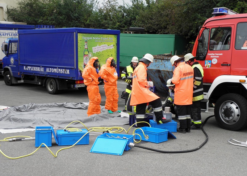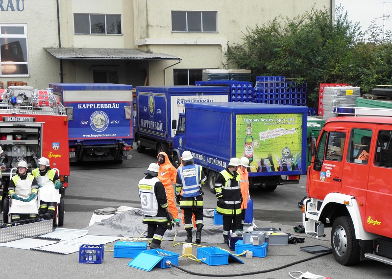 Ein Großaufgebot von Feuerwehr und Rettungsdienst machte sich am Samstagmorgen (27.09.2014) auf den Weg nach Altomünster – Ziel war die Brauerei Kapplerbräu in der Ortsmitte. „Ammoniakgasaustritt – mehrere Personen vermisst“ lautete die Einsatzmeldung, doch glücklicherweise handelte es sich hierbei nur um eine groß angelegte Übung.