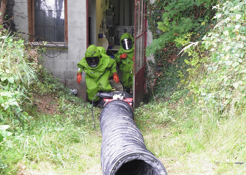 Zur Unterstützung wurden Kräfte aus der Nachbargemeinde Hilgertshausen-Tandern sowie der Gefahrgutzug des Landkreises geordert. Dieser zog mit einem Be- und Entlüftungsgerät zunächst den dichten Qualm aus den betroffenen Kellerräumen, um anschließend an der lecken Gasleitung arbeiten zu können. Unter gasdichten Chemikalienschutzanzügen gingen die Kräfte des Gefahrgutzuges schließlich zur Schadensstelle vor und dichteten die Leckage ab.