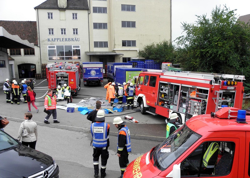 Angenommenes Szenario war der Austritt von Ammoniak während Reparaturarbeiten an der Kühlanlage im Keller der Brauerei, Monteure wurden dabei verletzt und galten als vermisst.