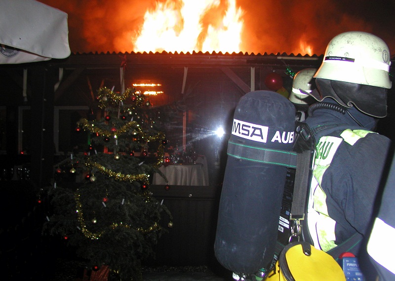 Nach ersten Informationen bemerkten die Anwesenden das Feuer auf dem Dach, das vermutlich durch einen Feuerwerkskörper verursacht wurde, und unternahmen eigene Löschversuche. Die Mitarbeiter waren auch so besonnen, um die gasbetriebenen Heizpilze aus dem brennenden Anbau zu tragen und die Gasversorgung der Küche abzustellen.