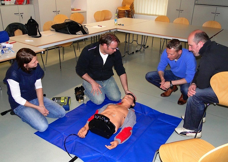 Nicht nur für die Versorgung von Verletzten bei Einsätzen ist es lebenswichtig die richtigen Handgriffe in Erster Hilfe zu kennen, auch bei der anstrengenden Ausbildung von Atemschutzgeräteträgern kann es zu gefährlichen Situationen kommen, die ein schnelles Eingreifen erfordern.Deshalb haben die Atemschutzausbilder im Landkreis Dachau eine Einweisung in das Equipment des „Notfallrucksacks“ bekommen und wurden in der Frühdefibrillation ausgebildet.