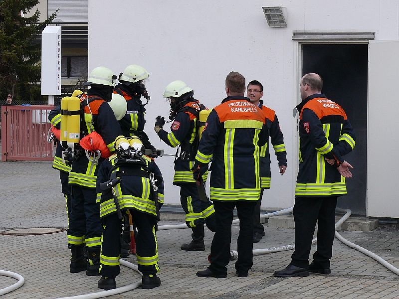 Elf Einsatzkräfte der Feuerwehr Karlsfeld stellten bei der Prüfungsabnahme zur Atemschutzausbildung ihr Können unter Beweis. Nach zwei Wochen harter Theorie- und Praxisausbildung, welche in Summe 25 Stunden Zeit in Anspruch nahm, fand am 20. März die theoretische und praktische Prüfung im heimischen Gerätehaus statt. Alle Teilnehmer bestanden diese mit Bravour.Aufgeteilt in zwei Gruppen musste bei der praktischen Ausbildung anfangs ein Löschaufbau durchgeführt und zwei vermisste Personen aus einem simuliertem Zimmerbrand gerettet werden. Verschiedene Hindernisse und verzwickte Situationen sollten die Lage zusätzlich erschweren, so kam unter anderem eine spezielle Nebelmaschine zum Einsatz.