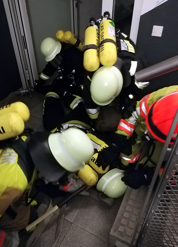Darüber hinaus wurde auch die körperliche Fitness der Kursteilnehmer getestet und deren Orientierungsfähigkeit im Dunkeln sowie die Stressbelastung in der Atemschutzübungsstrecke geübt.