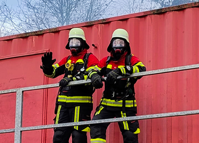 Zum Höhepunkt des Kurses reisten die Teilnehmer nach Karlshuld in die gasbefeuerte Brandsimulationsanlage des Freistaats Bayern. Dort konnten sie unter kontrollierten, aber äußerst realistischen Bedingungen ihr erlerntes Wissen anwenden. In den verschiedenen Brandräumen werden Temperaturen von mehreren Hundert Grad erreicht, dichter Rauch erschwert die Orientierung und die Sichtverhältnisse sind wie im Ernstfall nahezu null. Unter dieser Belastung mussten die Trupps koordiniert vorgehen, Schläuche verlegen, gezielt Feuer bekämpfen und Personenrettungen durchführen.