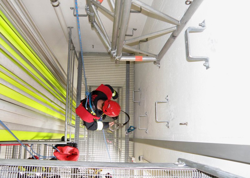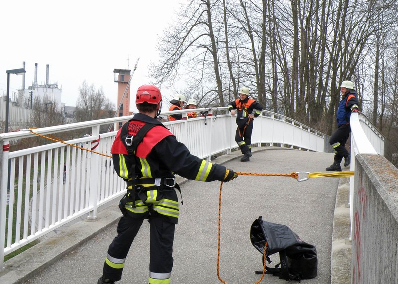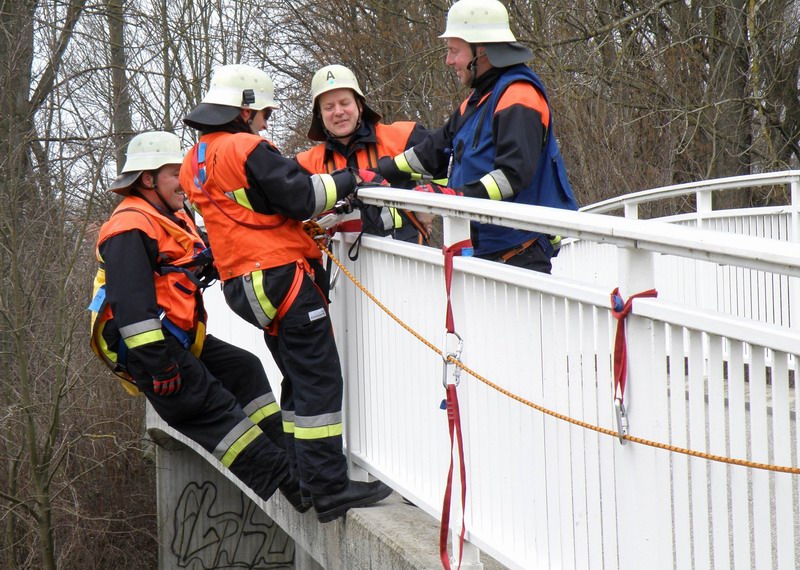 - Übungen zum Selbstretten, Halten und Rückhalten mit üblichen Rettungsgeräten der Feuerwehren