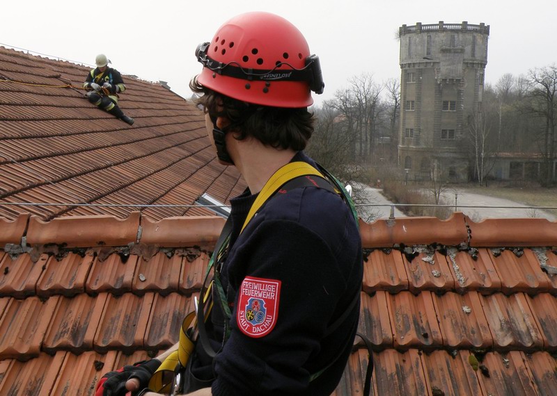Nach verschiedenen Vorbereitungsveranstaltungen zur Ausbildung Absturzsicherung mit dem Gerätesatz Absturzsicherung für Feuerwehren wurde nun vom 01.04.2009 bis 04. 04.2009 der erste Kurs für die Feuerwehren im Landkreis Dachau durchgeführt.In theoretischen Unterrichten und überwiegend praktischen Übungen wurden der Zweck und die Grenzen der verschiedenen Ausrüstungsgegenstände für den Schutz vor den Gefahren durch Absturz vermittelt. Neben UVV, Erste Hilfe und Gerätekunde wurden folgende Übungen durchgeführt: