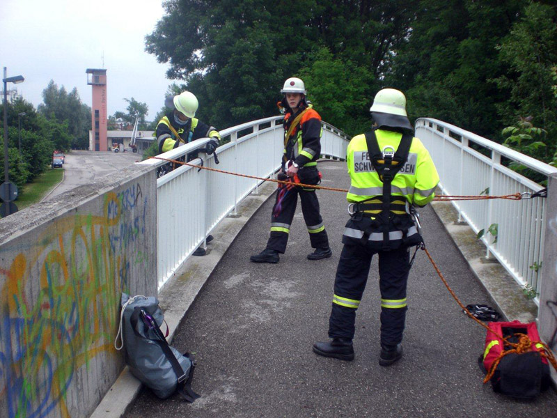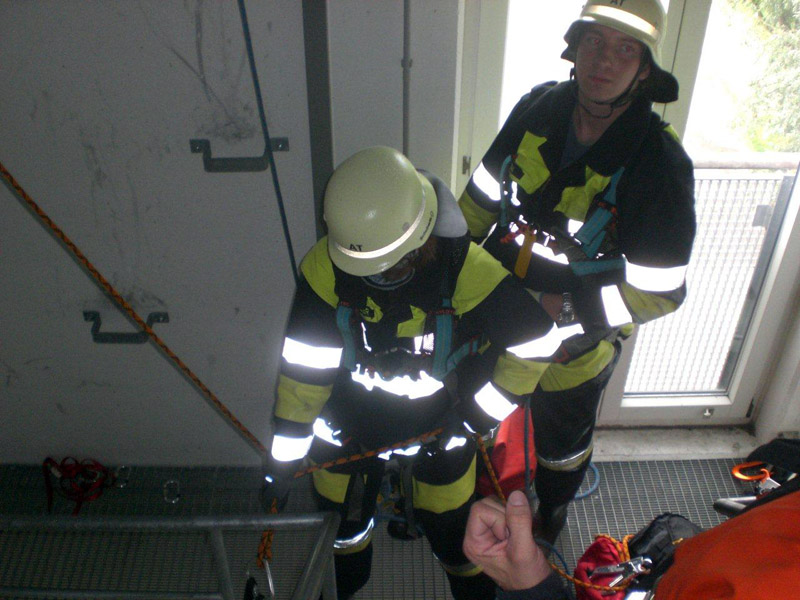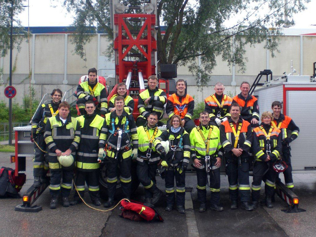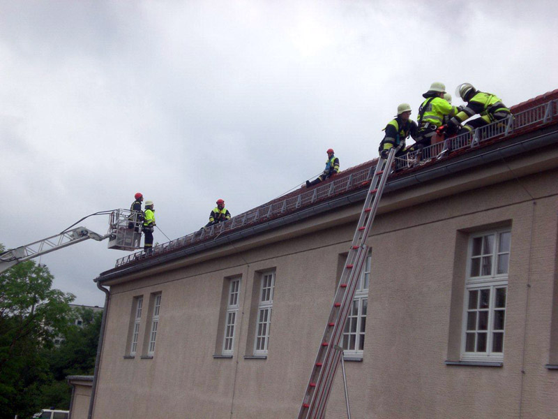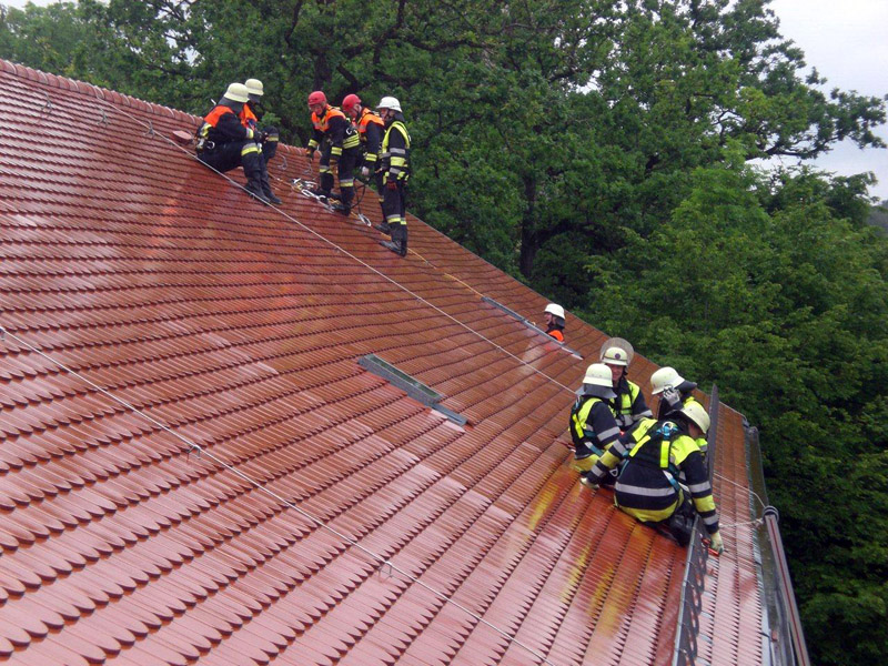 Vom 15. bis 19. Juni 2010 wurde ein weiterer Lehrgang zum Thema Absturzsicherung durchgeführt. Dabei hatten die 10 Teilnehmer aus den Feuerwehren Dachau, Eisenhofen, Haimhausen, Hebertshausen und Schwabhausen sowie die Ausbilder aus den Feuerwehren Dachau, Hilgertshausen, Vierkirchen und der Kreisbrandinspektion beinahe durchgehend mit der regnerischen Witterung zu kämpfen.Da Einsätze mit der Anforderung nach dem Gerätesatz Absturzsicherung auch meistens bei schlechter Witterung stattfinden, waren die Übungen auf den nassen Dächern besonders lehrreich und praxisnah.