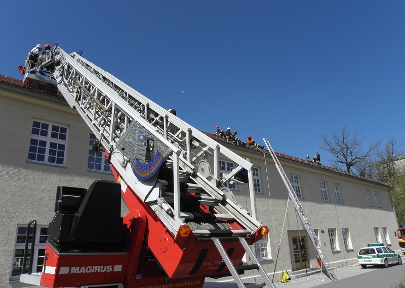 Die zunehmende Gebäudehöhe, unsichere Dachkonstruktionen und vermehrte Einsätze in absturzgefährdeten Bereichen, erfordern für Feuerwehrleute eine entsprechende Ausbildung, um auch bei anspruchsvollen Szenarien sicher arbeiten zu können.Deshalb bietet die Kreisbrandinspektion Dachau einen Lehrgang für Feuerwehren an, die einen sogenannten „Gerätesatz Absturzsicherung“ im Einsatz verwenden. In der Zeit vom 06.04.2011 bis 09.04.2011 fand wieder ein solcher bei der Feuerwehr Dachau statt.