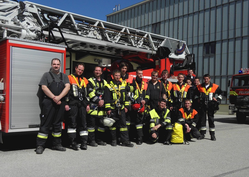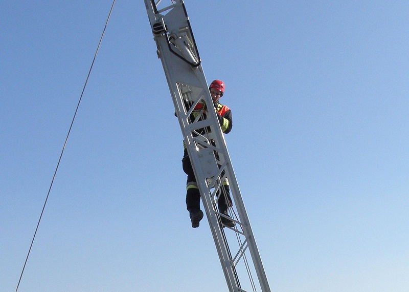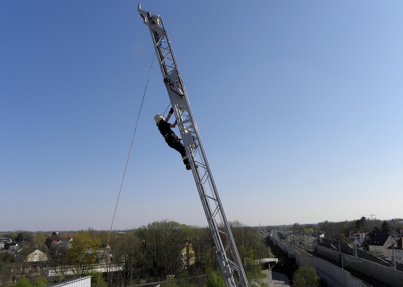 Das Spektrum reicht hier von der Selbstrettung, über die Sicherung auf Dächern und den senkrechten und waagrechten Vorstieg, bis hin zur Höhengewöhnungsübung mit Aufstieg auf die 30 Meter hohe Drehleiter.
