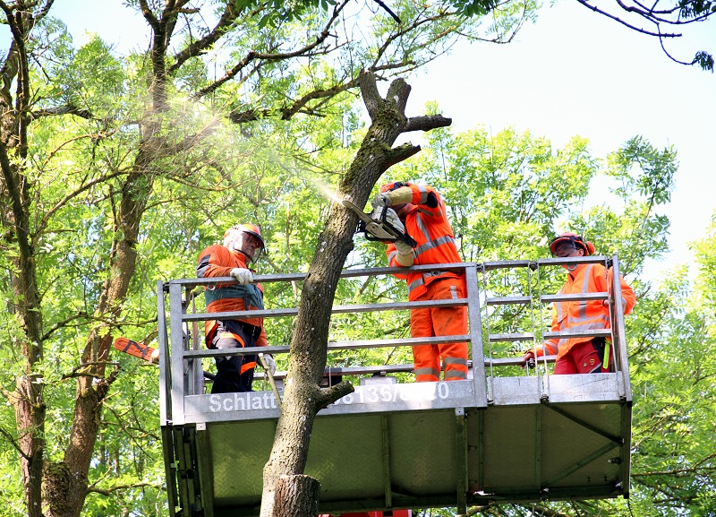 Ausbildung in luftiger Höhe – Pilotlehrgang Motorsägenarbeiten in der Drehleiter