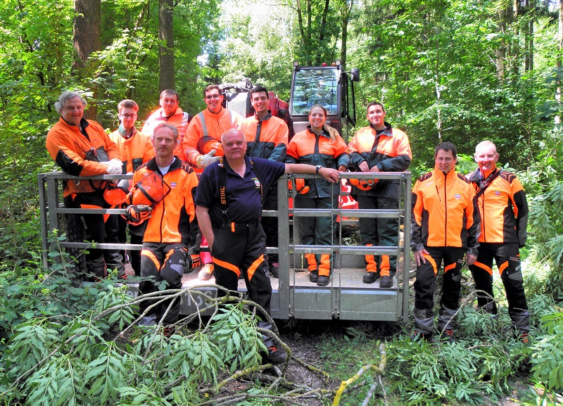 Ein besonderes Dankeschön gilt dem Waldbesitzer Clemens von Trebra-Lindenau, der die notwendigen Baumstämme kostenlos zur Verfügung stellte sowie Josef Schlatterer für die Zurverfügungstellung des notwendigen Arbeitsgerätes für die praktische Ausbildung.