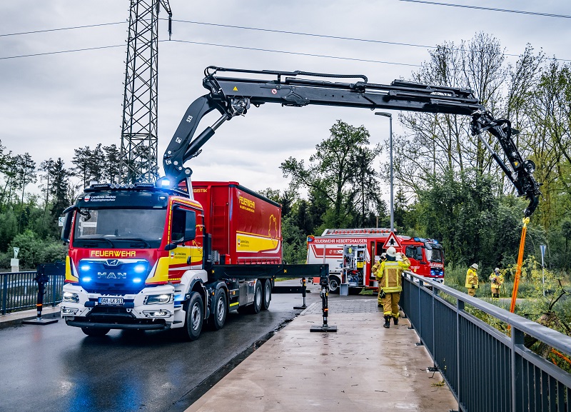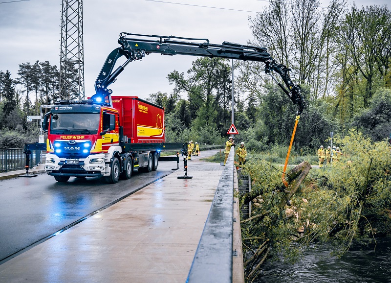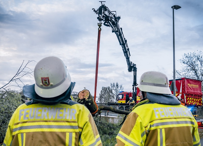 Der Baumstamm wurde zunächst mit einer Seilwinde gesichert. Aufgrund der Größe des Baumes entschied man sich die Baumkrone mit Hilfe eines Krans separat zu bergen, hierfür wurde das Wechselladerfahrzeug des Katastrophenschutzzentrums hinzugezogen. Der Kran hob die Baumkrone sicher an die Uferböschung, mit der Seilwinde des Hilfeleistungslöschfahrzeuges wurde letztendlich auch der Stamm die Böschung hinaufgezogen.