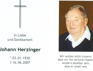 Über 500 Trauergäste haben auf dem Röhrmooser Friedhof Abschied von Hans Herzinger genommen, der nach kurzer schwerer Krankheit am 16. Juni 2007 im Alter von 77 Jahren verstorben ist.Den Trauergottesdienst zelebrierten Feuerwehr-Seelsorger Diakon Albert Wenning und Kaplan Jachnik. Hans Herzinger war mit Leib und Seele Feuerwehrmann; 16 Jahre war Herzinger erster Kommandant der Freiwilligen Feuerwehr Röhrmoos, weitere sechs Jahre deren Kommandant-Stellvertreter. Von August 1980 bis Januar 1990 war er als Kreisbrandmeister für den Landkreis Dachau tätig.