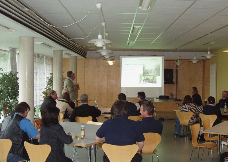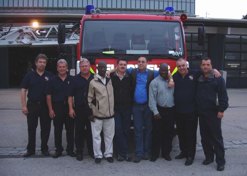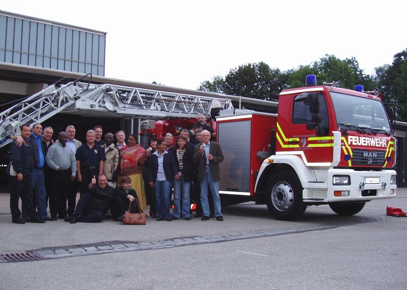 Im Dachauer Feuerwehrhaus wurden die Besucher von Angehörigen der Kreisbrandinspektion empfangen; Kreisbrandrat Rudi Reimoser und Stadtbrandinspektor Konrad Tonhauser stellten dabei das Feuerwehrwesen und die Struktur des Landkreises und der Großen Kreisstadt vor.