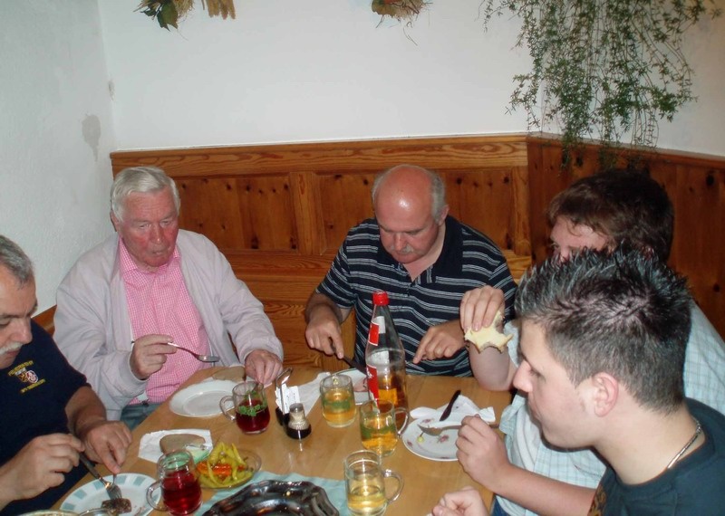 Wie in Österreich üblich, trafen wir uns dann abends beim Heurigen, wo wir von den Kameraden der FF Lindabrunn empfangen wurden und kosteten Wein und Spezialitäten der Region, was uns allen redlich mundete, besonders die Himbeerbowle!