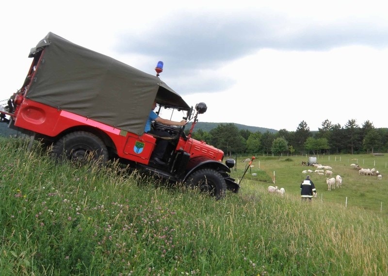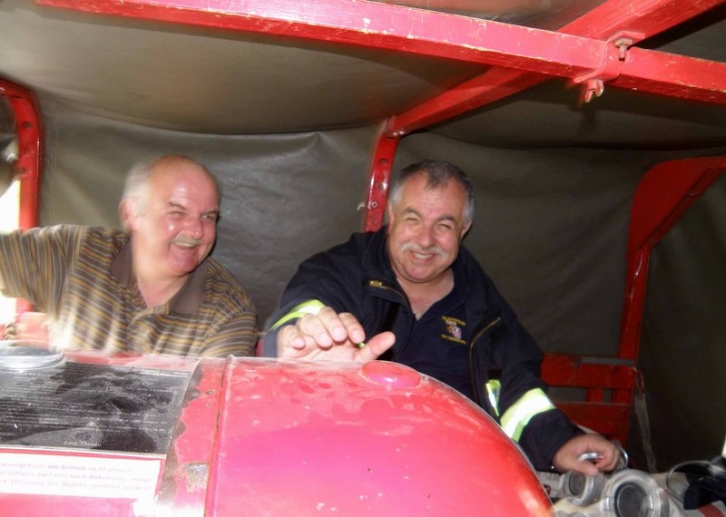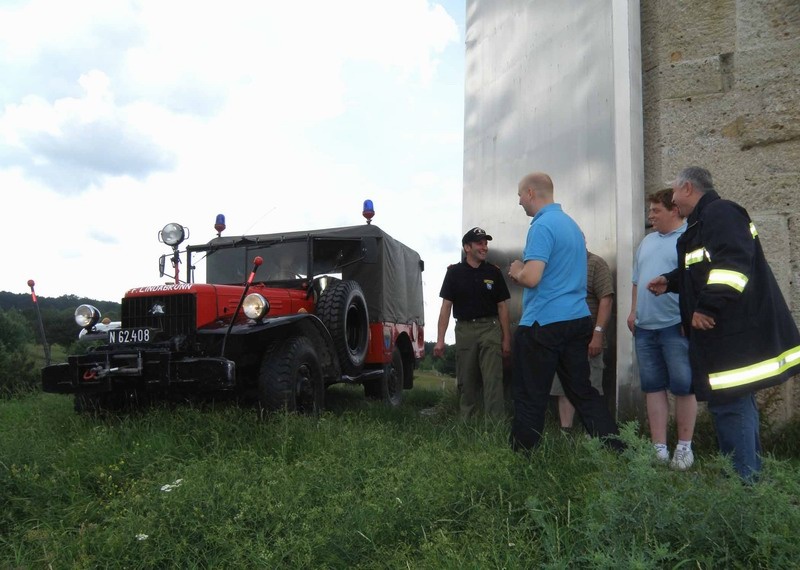 Am Nachmittag, wieder nach Lindabrunn zurück gekehrt, durfte natürlich eine Fahrt mit dem „Dodge“, der seit 61 Jahren dort seinen Dienst versieht, nicht fehlen. Zusammen mit dem Kommandanten, Oberbrandinspektor Thomas Stockreiter ging´s dann mit dem geländegängigen Feuerwehrfahrzeug über Höhen und Tiefen rund um die waldreiche Gegend Lindabrunns, was unserem Kreisbrandrat die Schweißperlen auf die Stirn trieb und er lieber einen kurzen Teil der Strecke zu Fuß zurück legte.