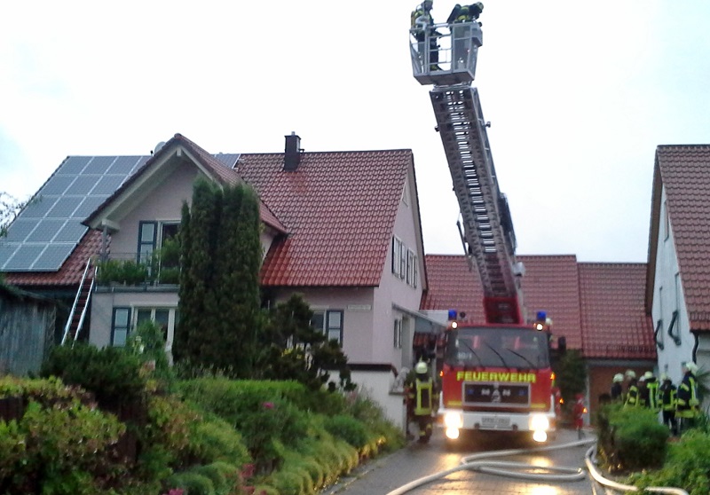 Die Gewitterfront am vergangen Montag (08.06.2015) hat auch im Landkreis Dachau seine Spuren hinterlassen. Nach einem Blitzeinschlag in Orthofen (Gemeinde Sulzemoos) ist der Dachstuhl eines Wohnhauses gegen 6.00 Uhr in Brand geraten.