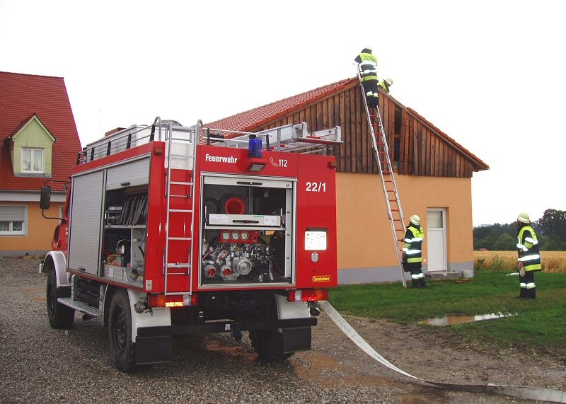 Glück im Unglück hatte ein Landwirt in Hebertshausen am Montag Abend. Als sich über dem Landkreis ein Gewitter entlud, schlug ein Blitz in die Gerätehalle ein. Glücklicherweise zündete der Blitz nicht und verursachte lediglich Sachschaden. Personen, die sich auf dem Anwesen aufhielten, wurden nicht verletzt.Im weiteren Verlauf bahnte der Blitz sich einen Weg zum Wohnhaus und anderen benachbarten Gebäuden; dabei wurden der Sicherungskasten, elektronische Geräte und mehrere Steckdosen erheblich beschädigt.