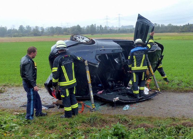 Aus noch ungeklärter Ursache ist ein BMW auf der Bundesstraße kurz nach der Anschlussstelle Dachau-West von der Fahrbahn abgekommen und hat sich überschlagen. Das Fahrzeug kam anschließend auf einem Wirtschaftsweg neben der Fahrbahn auf der Beifahrerseite zum Liegen.