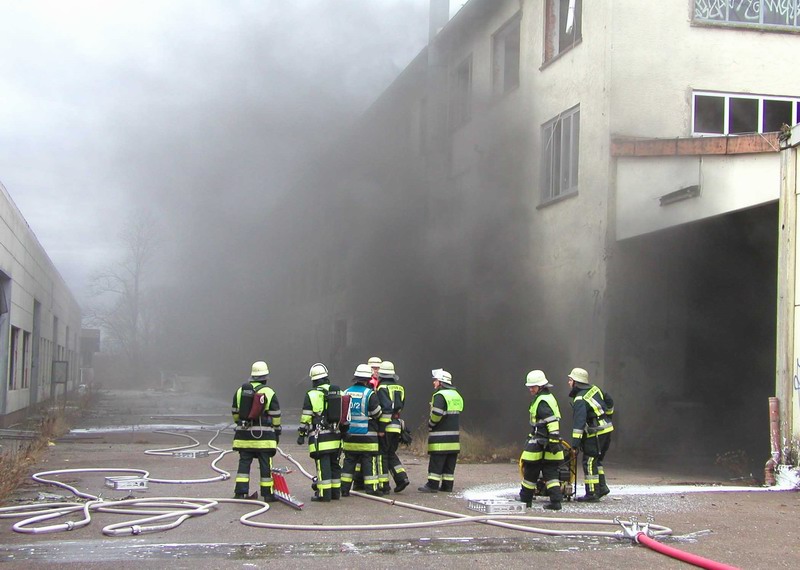 Vermutlich bei Flex-Arbeiten geriet in einem Kellerraum ein Tank in Brand. Die anwesenden Arbeiter versuchten noch, die Flammen mit einem Feuerlöscher zu bekämpfen, brachen den Versuch jedoch ab und verließen das Gebäude, bevor sie in Lebensgefahr gerieten.