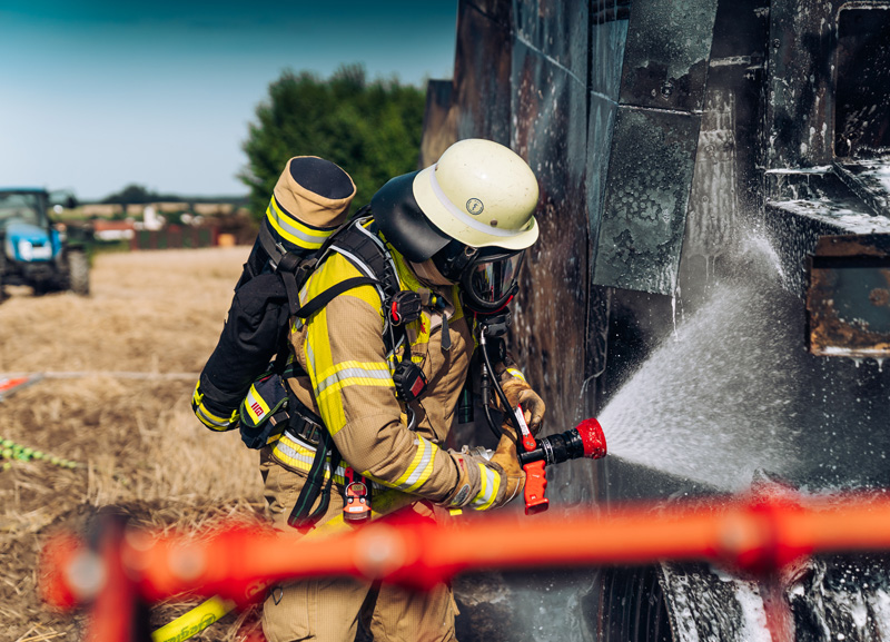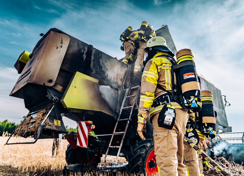Die Alarmierung der Einsatzkräfte erfolgte um 16.32 Uhr. Bereits auf der Anfahrt war eine dichte Rauchwolke weithin sichtbar, beim Eintreffen der Feuerwehr stand der Mähdrescher bereits in Vollbrand. Umgehend wurde die Brandbekämpfung eingeleitet: Mit vier Löschrohren und zwei Trupps unter schwerem Atemschutz wurde das Feuer unter Kontrolle gebracht. Im Einsatz waren die Feuerwehren aus Markt Indersdorf und Langenpettenbach sowie die Kreisbrandinspektion.