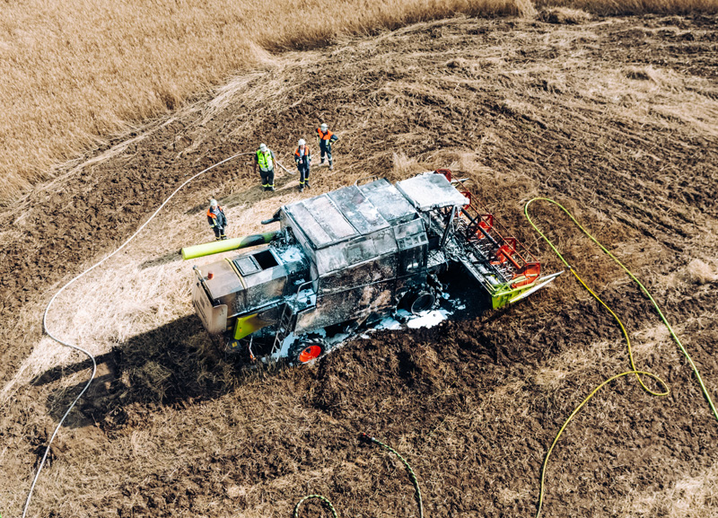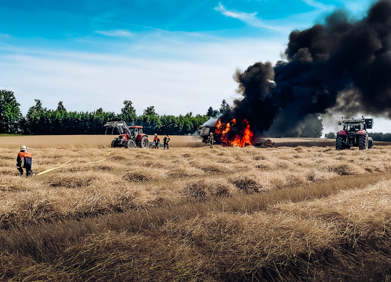 Rauch über dem Feld: Mähdrescher bei Eichstock ausgebrannt