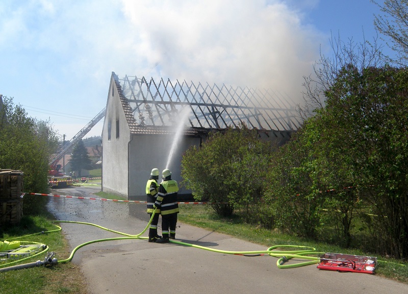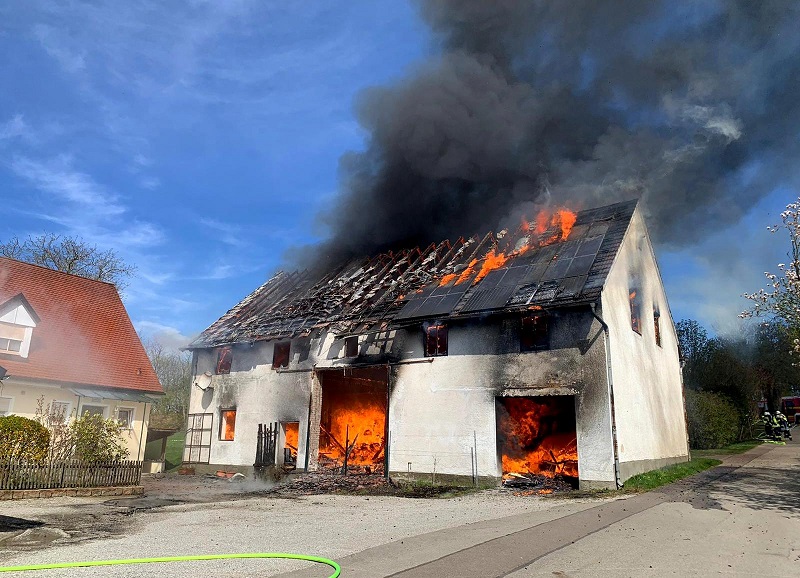 Die eingesetzten Wehren hatten das Feuer schnell unter Kontrolle, ein Übergreifen der Flammen auf das Wohnhaus konnte verhindert werden. Die Halle mit Photovoltaikanlage sowie darin gelagerte landwirtschaftliche Geräte fielen jedoch weitgehend den Flammen zum Opfer, Personen kamen glücklicherweise nicht zu Schaden.
