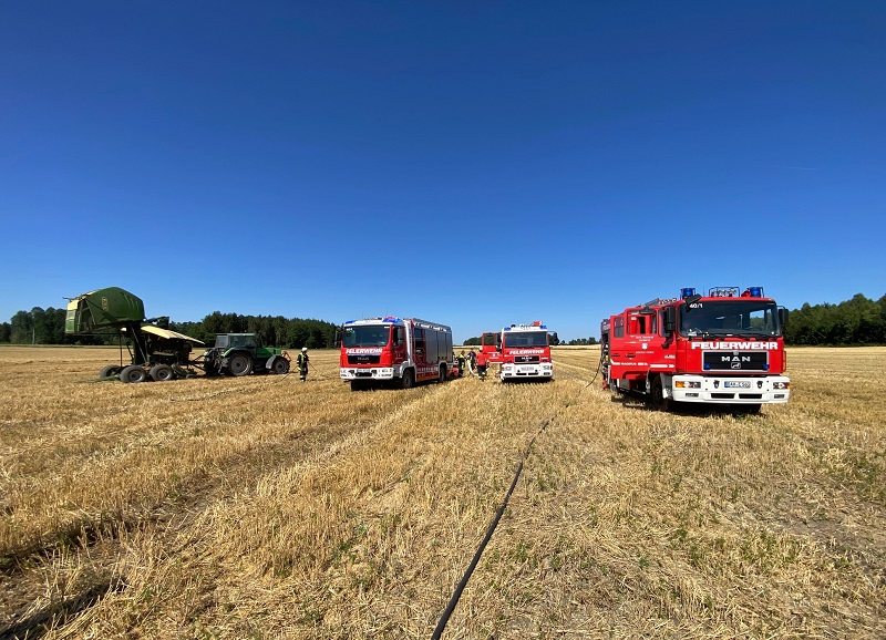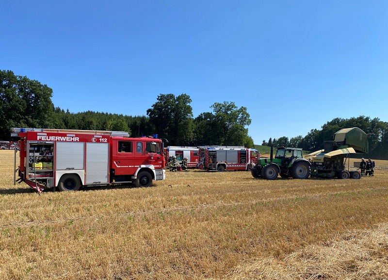 Auf einem Feld nahe der Ortsverbindungsstraße von Arnbach nach Erdweg ist eine Stohpresse in Brand geraten. Glücklicherweise konnte bereits beim Eintreffen der ersten Kräfte „Feuer aus“ gemeldet werden, da der Fahrer des landwirtschaftlichen Gespanns es geschafft hat das in Brand geratene Stroh rechtzeitig aus der Ballenpresse auszuwerfen – ein Übergreifen der Flammen wurde dadurch verhindert.