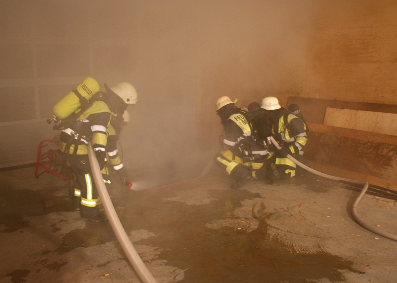 Aufgrund der starken Rauchentwicklung konnte die Brandbekämpfung nur unter schwerem Atemschutz durchgeführt werden.