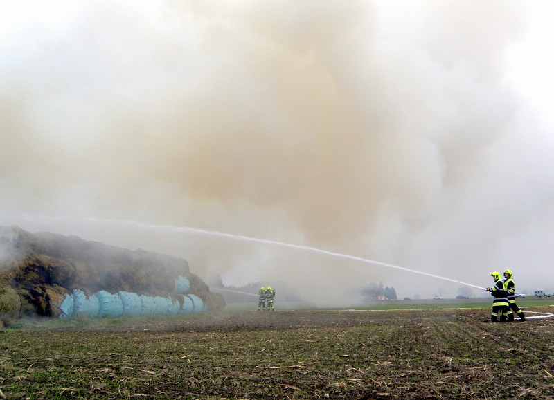 Um alle Glutnester zu erreichen, wurde das Brandgut mit Hilfe eines Radladers aus dem Stadel gebracht und ausgebreitet, anschließend konnte es komplett abgelöscht werden. Aufgrund der starken Rauchentwicklung waren die Arbeiten teilweise nur unter schwerem Atemschutz möglich.