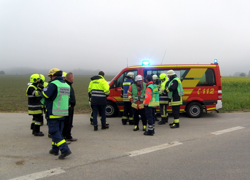 Für die Versorgung der Einsatzkräfte mit Getränken und Brotzeit rückte die SEG-Versorgung des BRK an.