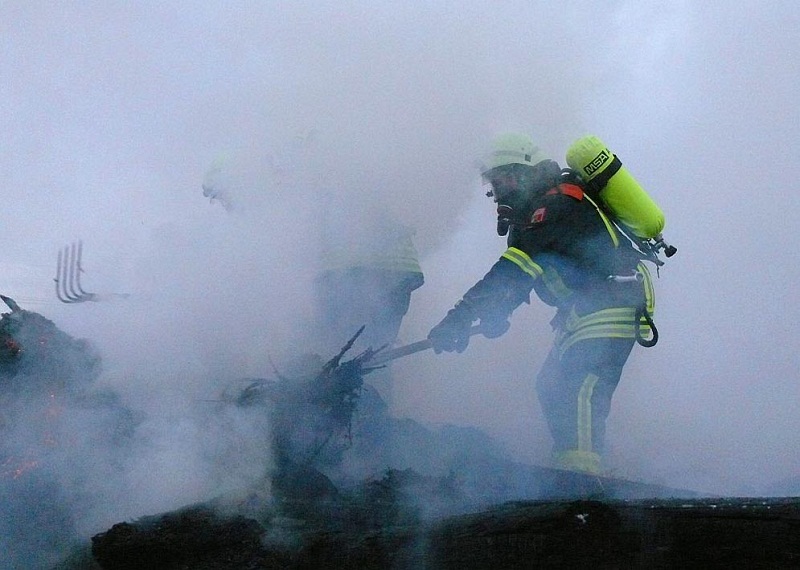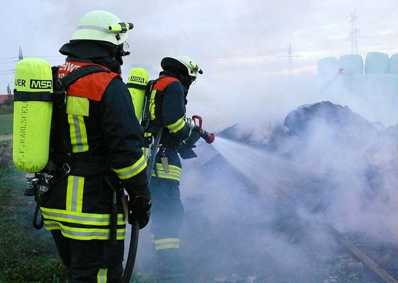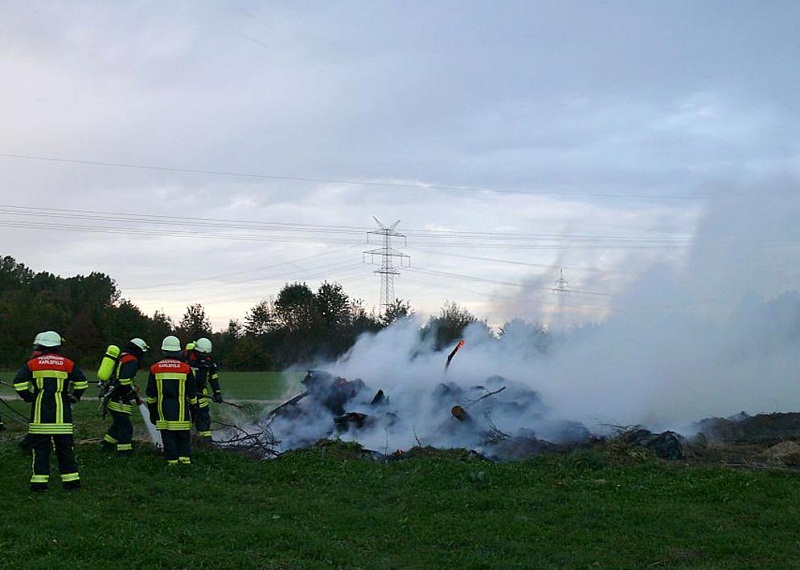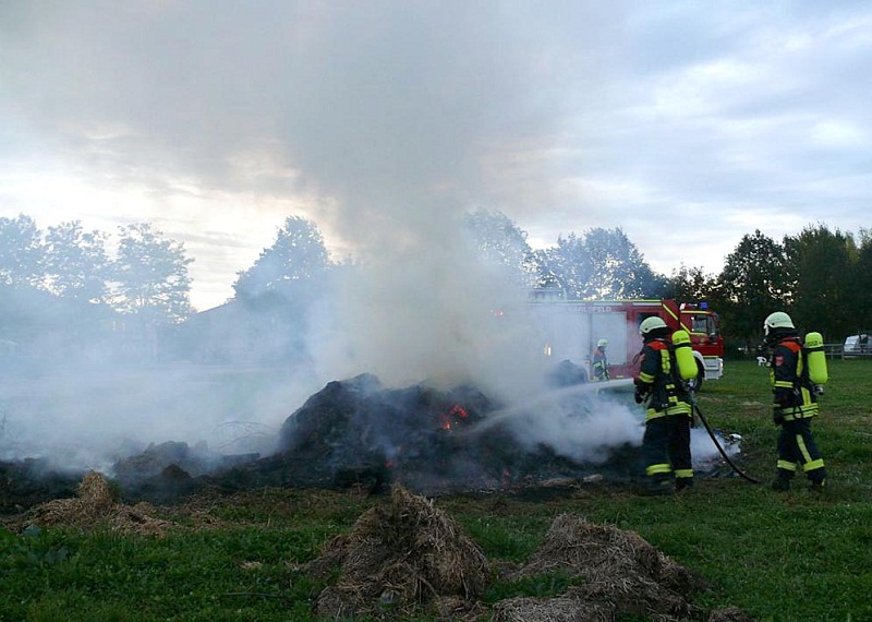 Der Brand eines größeren Strohhaufens im Hadinger Weg war Auslöser für einen Einsatz der Feuerwehr Karlsfeld am Abend des 06. Oktober 2011. Als um 18:02 Uhr der Alarm einging, versammelten sich die Helfer gerade zeitgleich zu einer Maschinistenübung im Gerätehaus.Kurzerhand rückten 21 Mann, verteilt auf drei Fahrzeuge, zum gemeldeten Brandobjekt aus. Unter Atemschutz wurde der ca. zehn Quadratmeter große Haufen von zwei Mann mittels Schnellangriff schnell und kontrolliert abgelöscht. Vereinzelte Glutnester wurden im Anschluss mit Hilfe von Mistgabeln auseinander gezogen und ebenfalls abgelöscht.