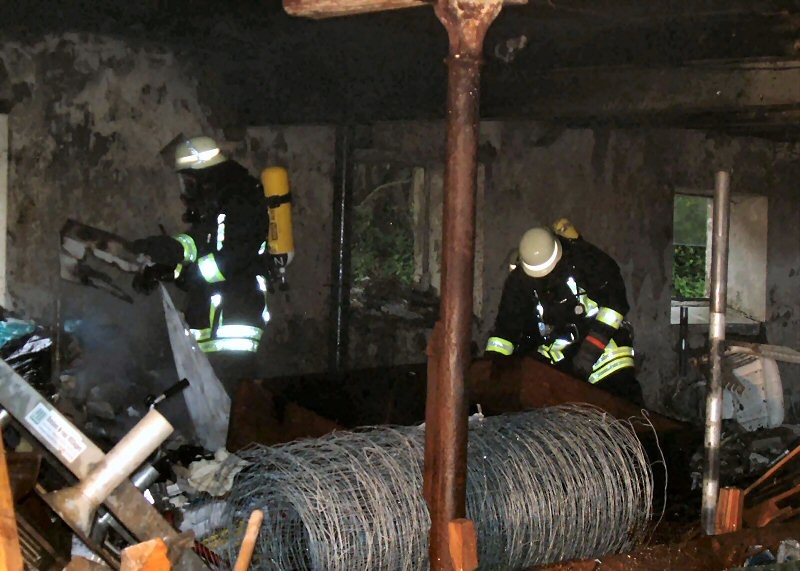 Schwierig gestalteten sich die Nachlöscharbeiten, da in der vorhandenen Holzdecke einzelne Glutnester entdeckt wurden, die mit einem Kleinlöschgerät abgelöscht wurden; zur Sicherheit wurde deshalb auch die Wärmebildkamera der Feuerwehr Indersdorf zur Ortung der Glutnester zum Einsatz gebracht.