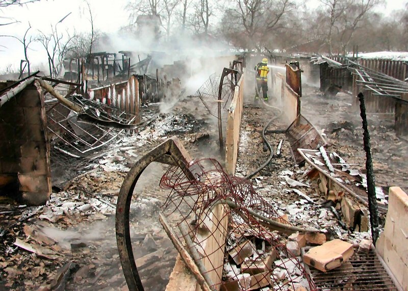 Zwölf Hunde fielen in den frühen Morgenstunden des Freitags beim Brand in einer Hundepension in Gröbenried den Flammen zum Opfer. Gegen 05.00 Uhr bemerkten Anwohner Feuer und verständigten sofort Feuerwehr, Polizei und Rettungsdienst. Beim Eintreffen der ersten Einsatzkräfte der Feuerwehr Eschenried stand bereits eine der vier lang gezogenen Boxen in Vollbrand, in denen insgesamt ca. 60 Hunde untergebracht waren.Nur durch den massiven Einsatz mehrerer Rohre der Stärken B und C, sowie eines Wasserwerfers konnte ein Übergreifen auf die weiteren Boxen verhindert werden – zur Unterstützung der örtlichen Feuerwehr waren auch die Wehren aus Dachau und Günding zur Brandbekämpfung eingesetzt.Die Löscharbeiten, die unter schwerem Atemschutz durchgeführt werden mussten, wurden durch starken Wind erschwert; zudem wurde eine mehrere hundert Meter lange Förderstrecke vom Gröbenbach her aufgebaut.Während ein Großteil der insgesamt 70 eingesetzten Kräfte in den Vormittagsstunden wieder in ihre Standorte einrücken konnten, verblieb die Ortsfeuerwehr als Brandwache noch am Objekt.Nachdem während der Löscharbeiten starker Wnd und eisige Kälte herrschte, übernahm der Betreuungszug des BRK Dachau die Versorgung der Feuerwehrkräfte mit heißen Getränken.
