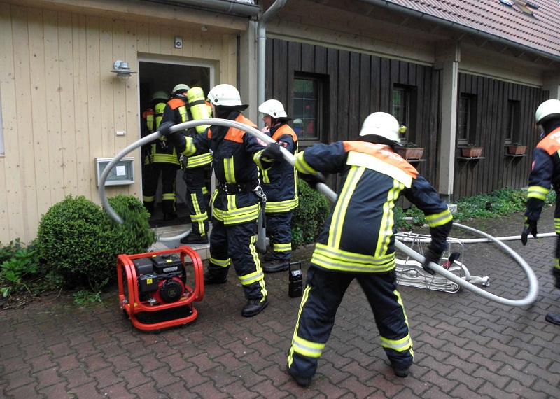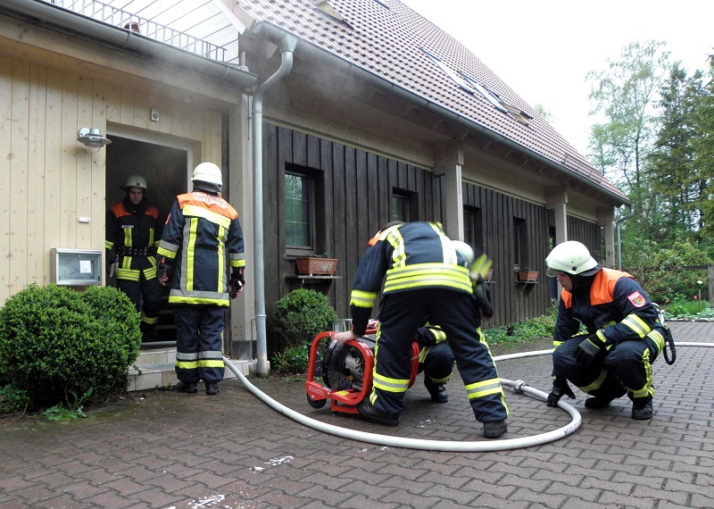 Ein Trupp, mit schwerem Atemschutz ausgerüstet, drang in die Räumlichkeiten vor, konnte jedoch keinen Brand, sondern lediglich starke Rauchentwicklung feststellen. Mit einem Hochdrucklüfter konnten die Räume innerhalb kurzer Zeit wieder rauchfrei gemacht werden und die Personen in ihre Wohnungen zurück kehren.