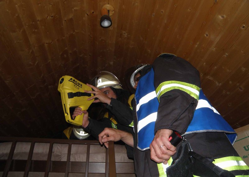 Einsatzkräfte der Feuerwehr Petershausen setzten eine Wärmbildkamera zur Ortung der eventuellen Ursache ein, konnten aber keine Feststellung treffen - das TV-Gerät wurde vorsichtshalber aus dem Raum entfernt.
