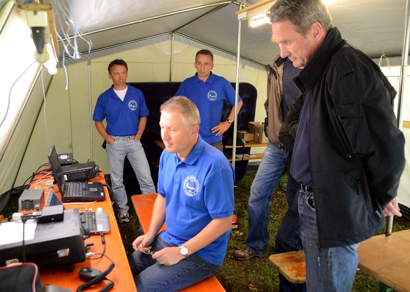 Bei einem Treffen zwischen den Verantwortlichen der Kreisbrandinspektion Dachau und den Funkamateuren am 14. Juli 2012 stellten diese ihre Möglichkeiten vor, Hilfe bei der Herstellung stabiler Kommunikationsverbindungen bei Großschadenslagen oder Ausfällen der BOS-Funksysteme zu leisten.Dieses Treffen wurde bei einem Vorgespräch im Januar vereinbart, um praxisnah Einblick in die Fähigkeiten und die technische Basis der Funkamateure zu erlangen. Auf dem Dachauer Rodelberg "An der Schinderkreppe" hatten die Funkamateure ein Zeltlager aufgebaut und einen Teil ihrer portablen Funktechnik in Betrieb genommen.