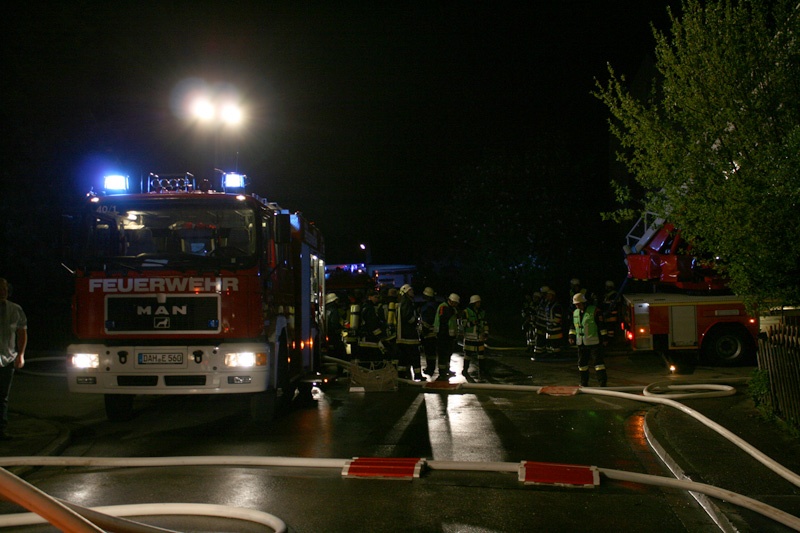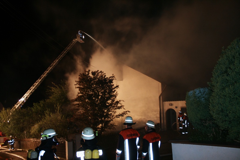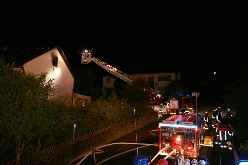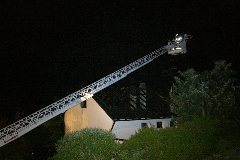 Beim Eintreffen der ersten Feuerwehren stand der Dachstuhl des Hauses bereits in Vollbrand. Die sich im Haus befindenden Personen kamen glücklicherweise nicht zu Schaden; sie konnten das Gebäude unverletzt verlassen und wurden vom Rettungsdienst betreut.